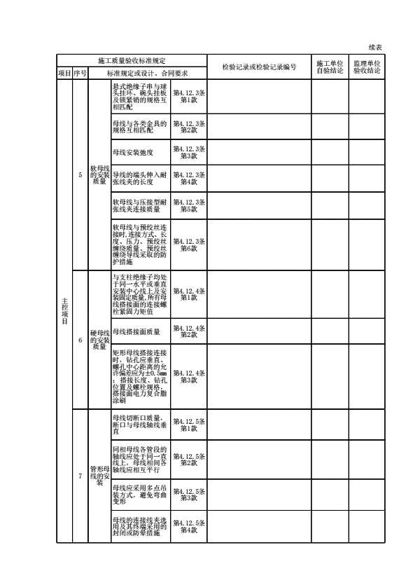 表格名称:G10010501 母线及绝缘子检验批质量验收记录表