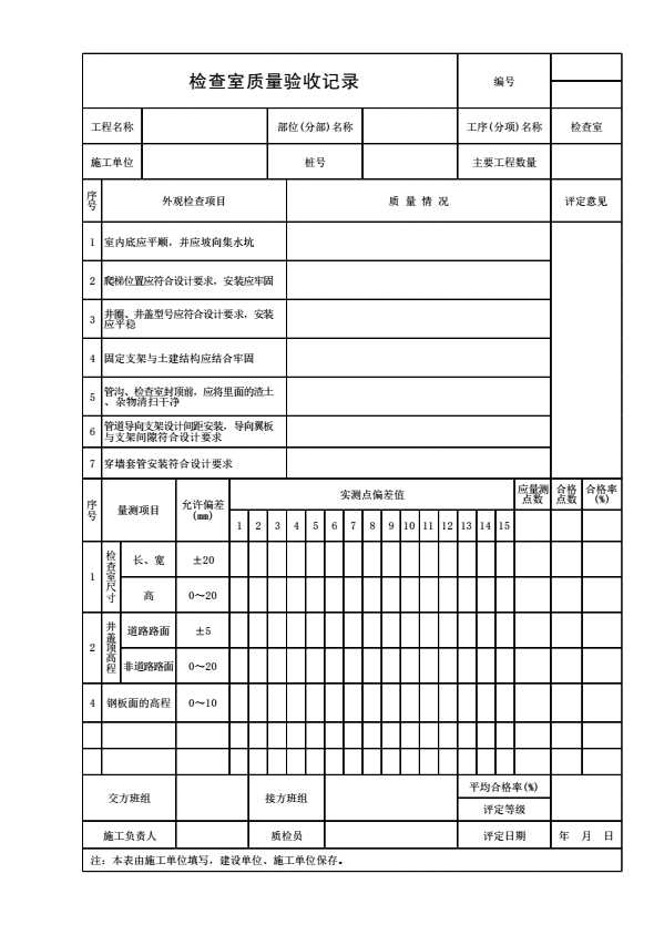 表格名称:检查室质量验收记录