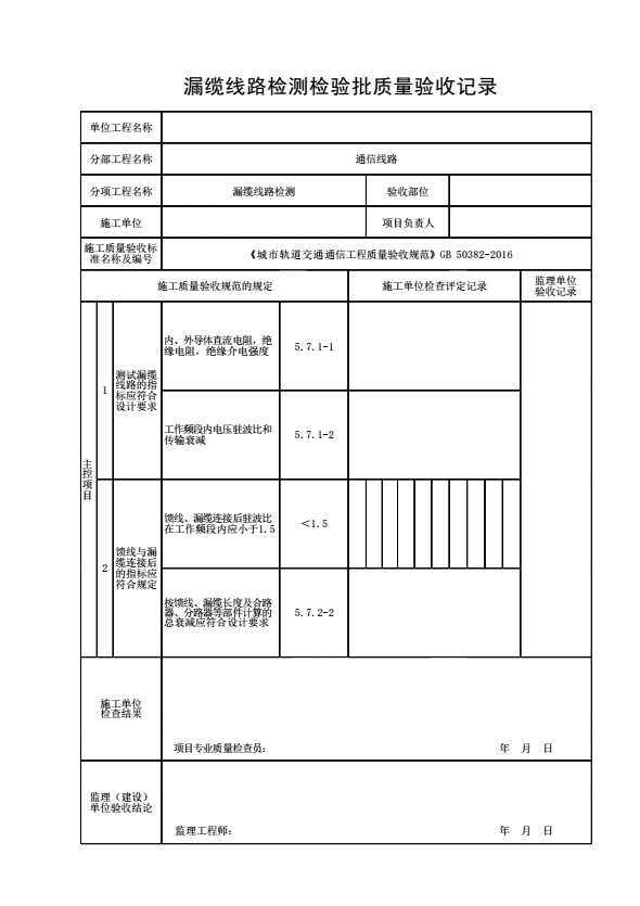 表格名称:漏缆线路检测检验批质量验收记录