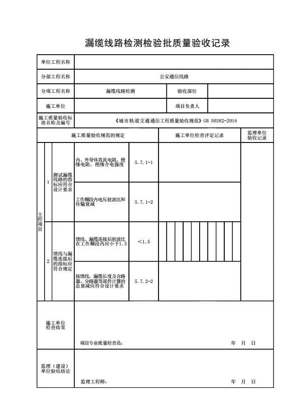 漏缆线路检测检验批质量验收记录