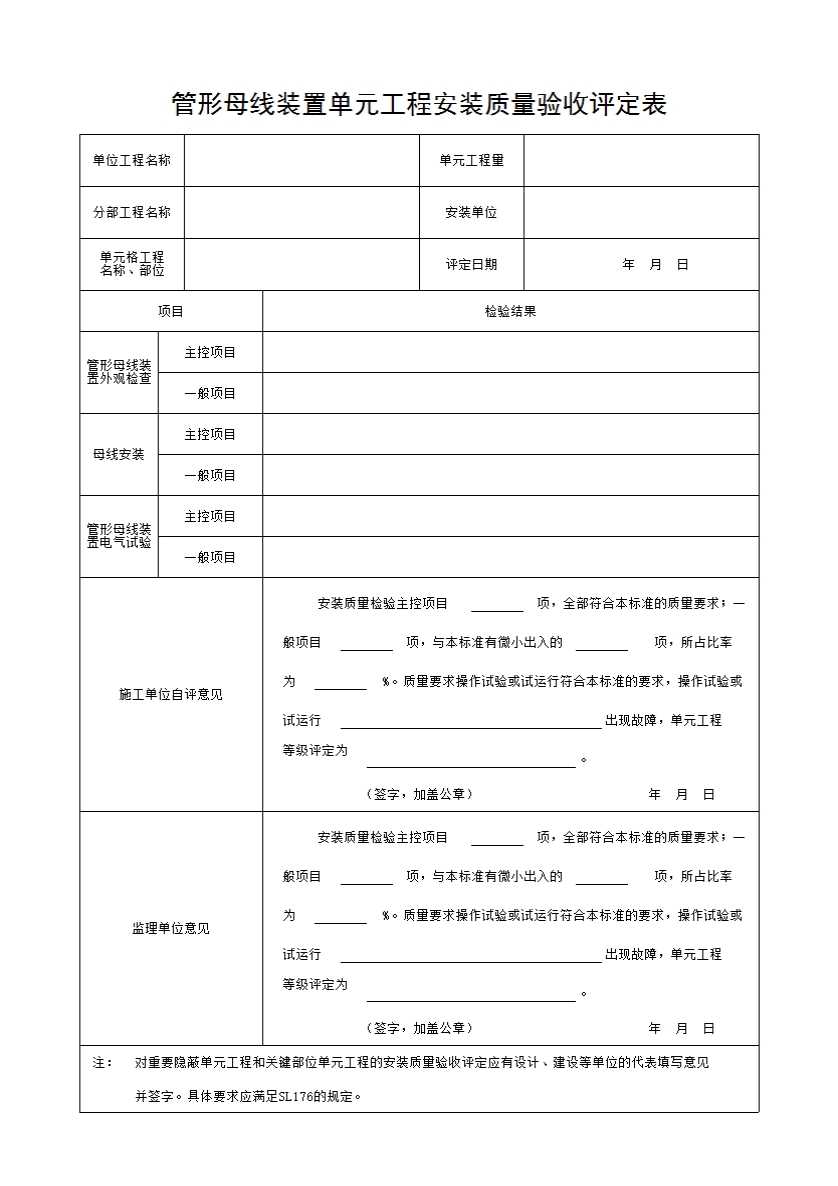 表格名称:管形母线装置单元工程安装质量验收评定表