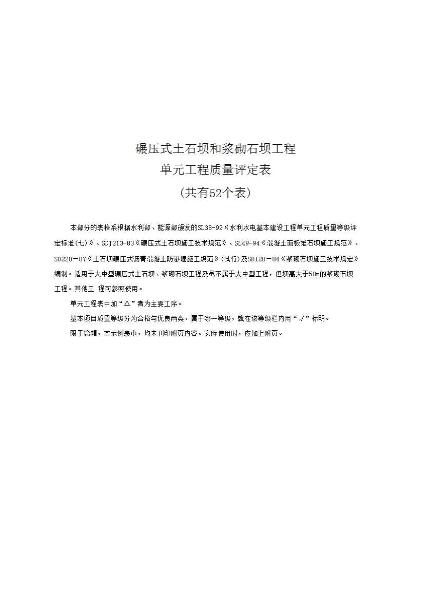 第八部分 碾压式土石坝和浆砌石坝工程单元工程质量评定表