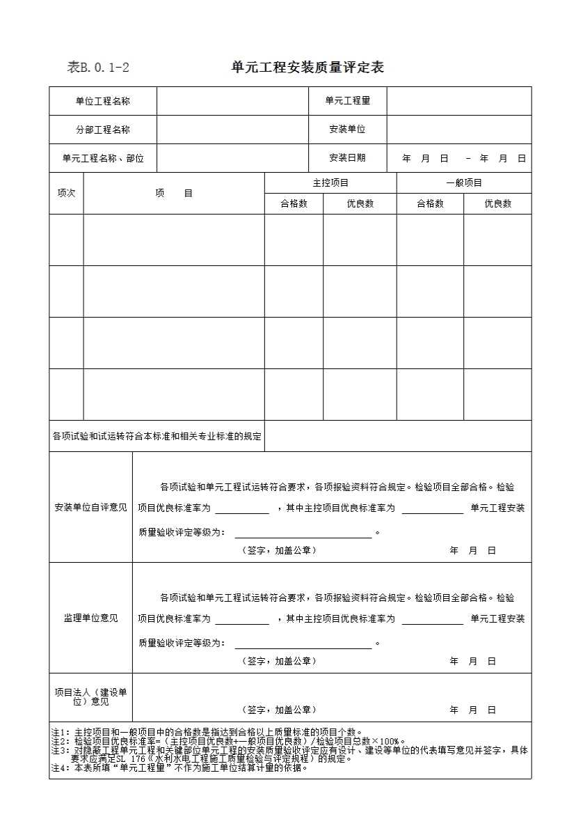 表格名称:表B.0.1-2 单元工程安装质量评定表