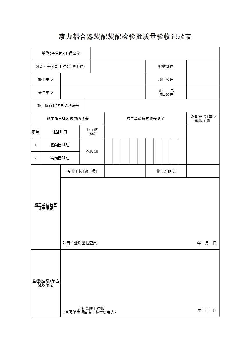 表格名称:液力耦合器装配装配检验批质量验收记录表