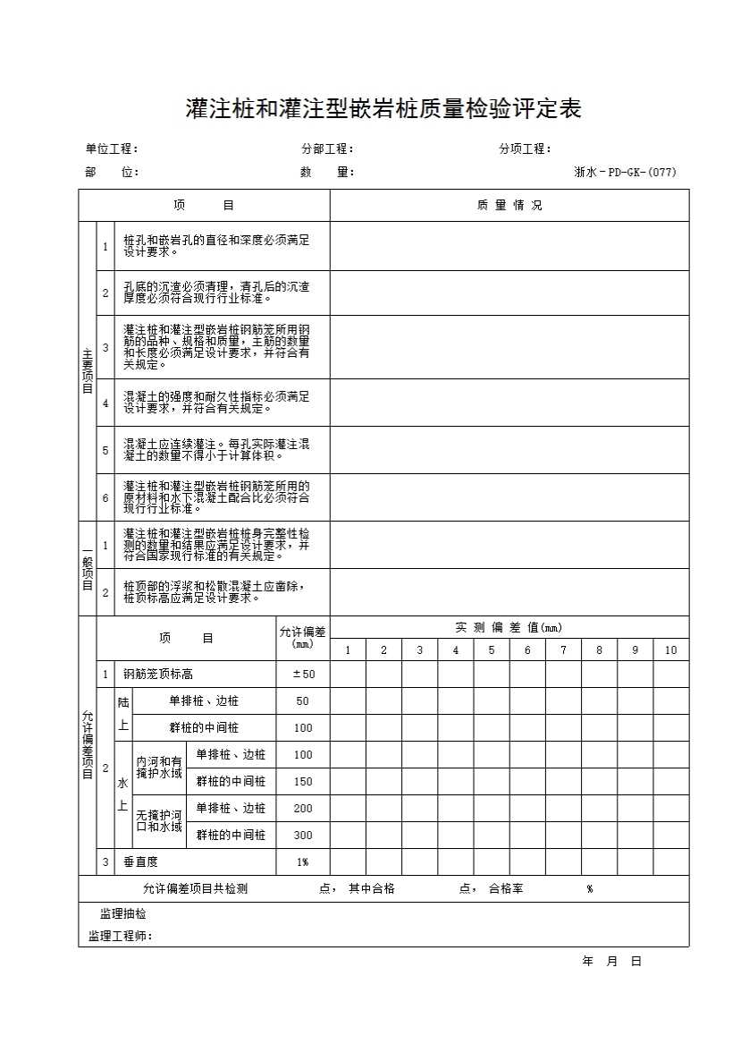 077 灌注桩和灌注型嵌岩桩质量检验评定表