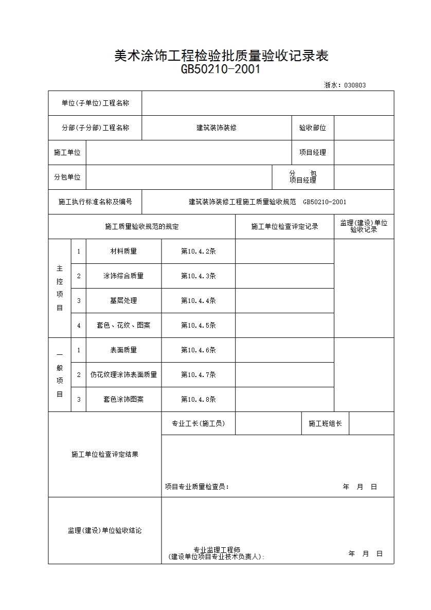 表格名称:140 美术涂饰工程检验批质量验收记录表