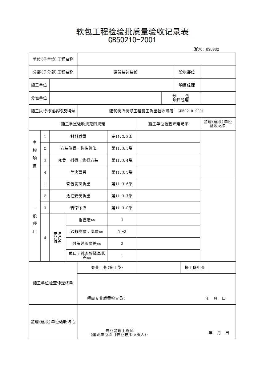 表格名称:142 软包工程检验批质量验收记录表