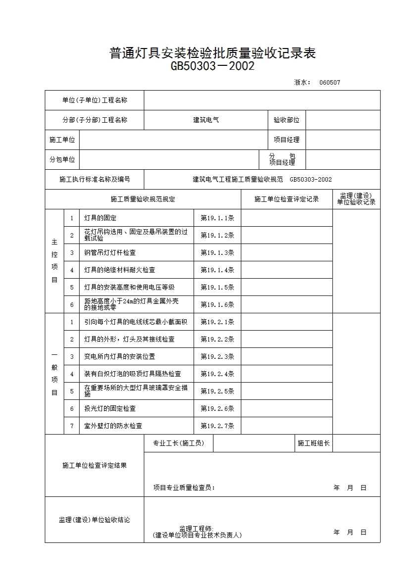 表格名称:202 普通灯具安装检验批质量验收记录表