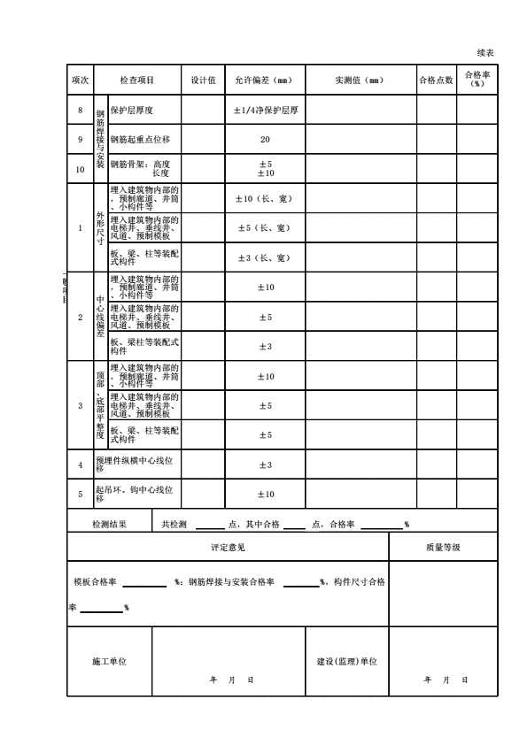 表格名称:表3.14 混凝土预制构件制作单元工程质量评定表