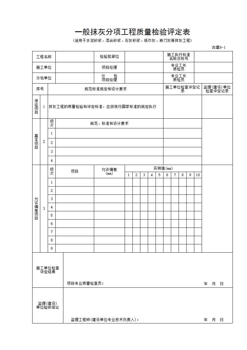 表格名称:古建8-1 一般抹灰分项工程质量检验评定表