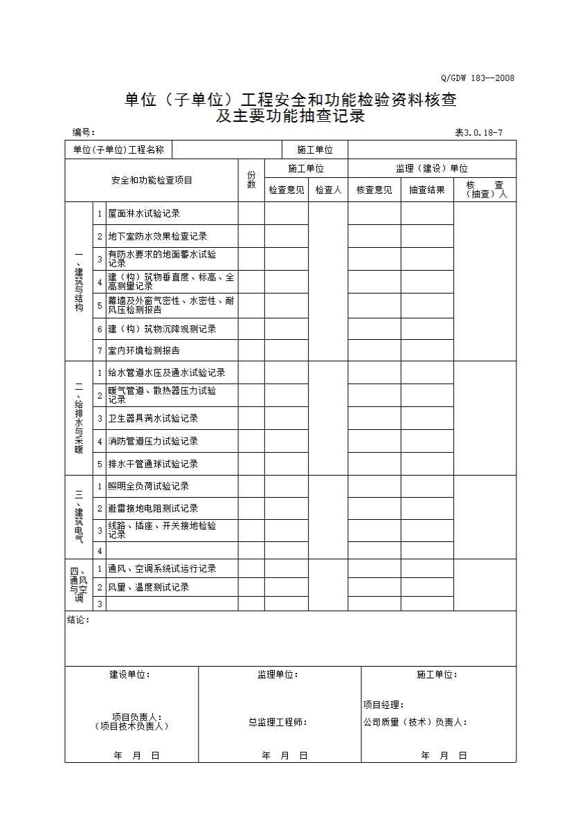 3.0.18-7_________单位(子单位)工程安全和功能检验资料核查及主要工程抽查记录表