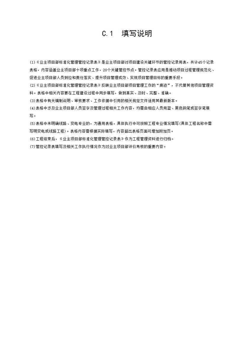 表格名称:C.1 填写说明