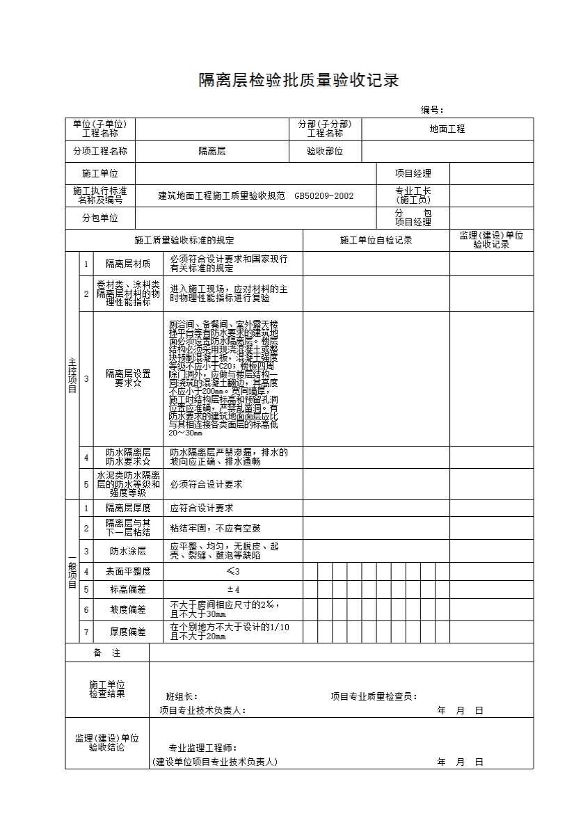 1) 隔离层: 按屋面面积每 100m 2 抽查 1 处, 每处 10m 2 ; 且不得少于 3 处;