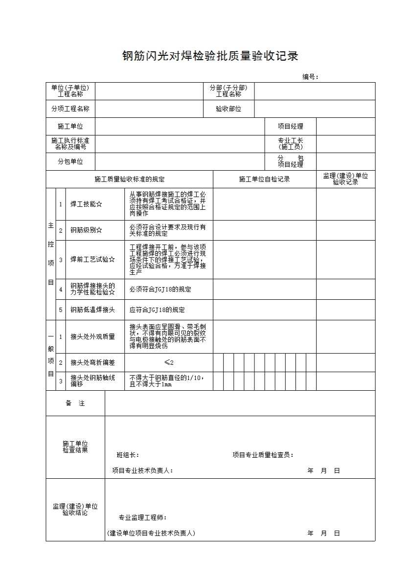 表格名称:C.1 钢筋闪光对焊检验批质量验收记录