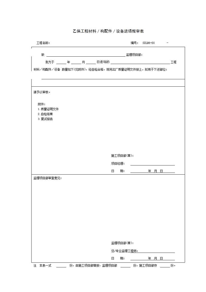 SZLB8 乙供工程材料/构配件/设备进场报审表