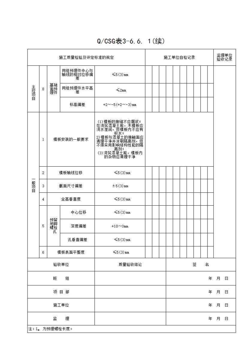 QCSG 表 3-6.6.1 模板安装工程检验批质量验收记录表