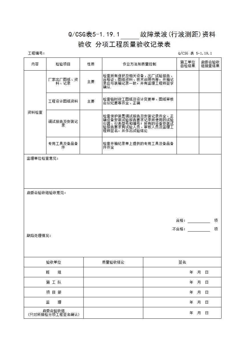 QCSG 表 5-1.19.1 ______故障录波(行波测距)资料验收 分项工程质量验收记录表