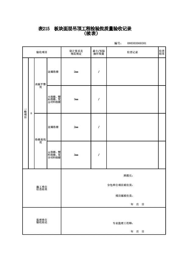 表格名称:080303060301 格栅吊顶工程检验批质量验收记录