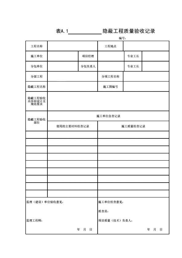 表格名称:表A.1 ______隐蔽工程质量验收记录