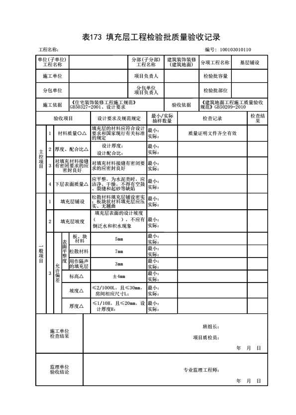 表格名称:100103010110 填充层工程检验批质量验收记录