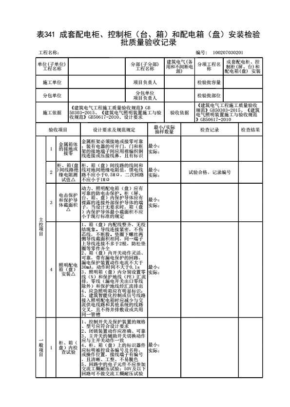表格名称:100207030201 成套配电柜、控制柜(屏、台)和配电箱(盘)安装检验批质量验收记录