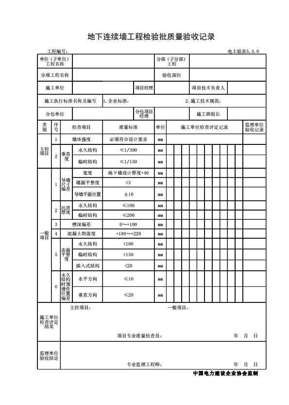 表格名称:电土验表5.3.9 地下连续墙工程检验批质量验收记录