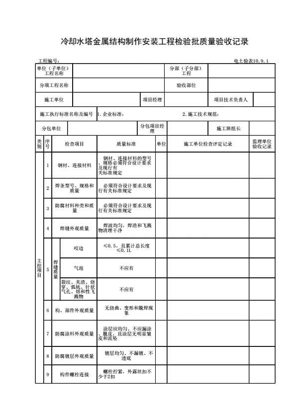 表格名称:电土验表10.9.1 冷却水塔金属结构制作安装工程检验批质量验收记录