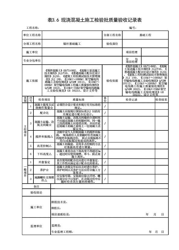 表格名称:表3.6 现浇混凝土施工检验批质量验收记录表