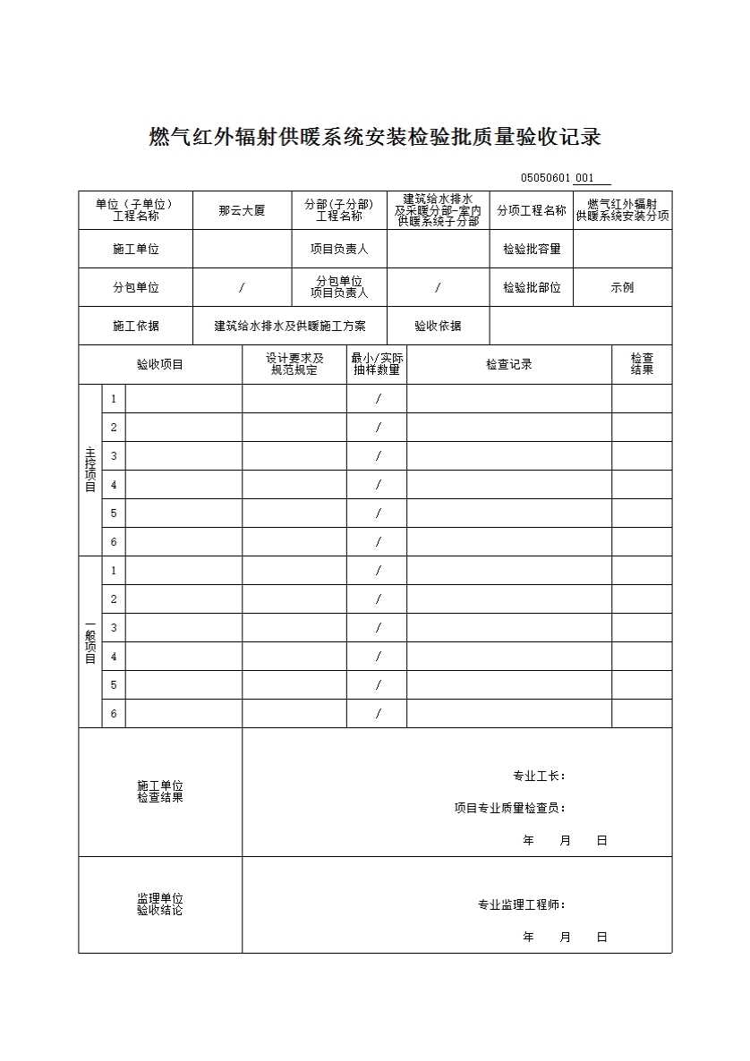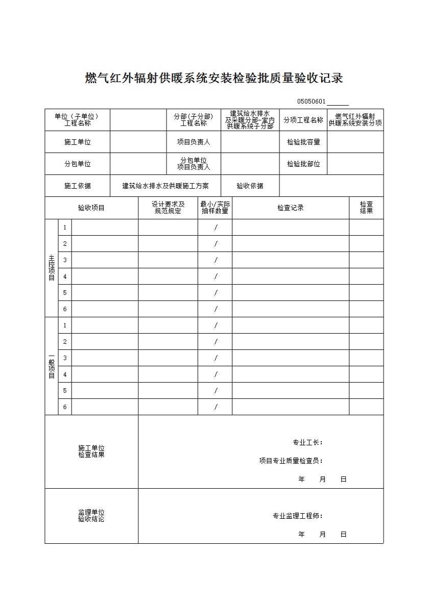 表格名称:05050601_燃气红外辐射供暖系统安装检验批质量验收记录