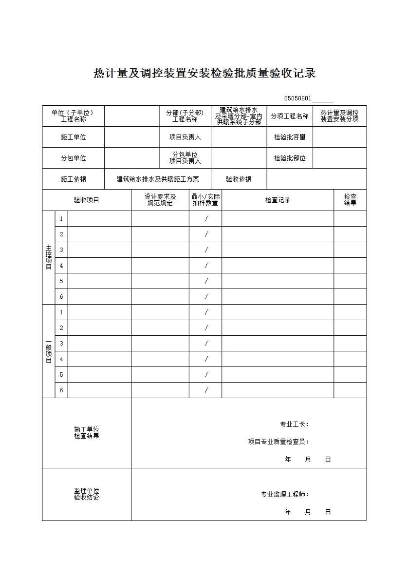 表格名称:05050801_热计量及调控装置安装检验批质量验收记录