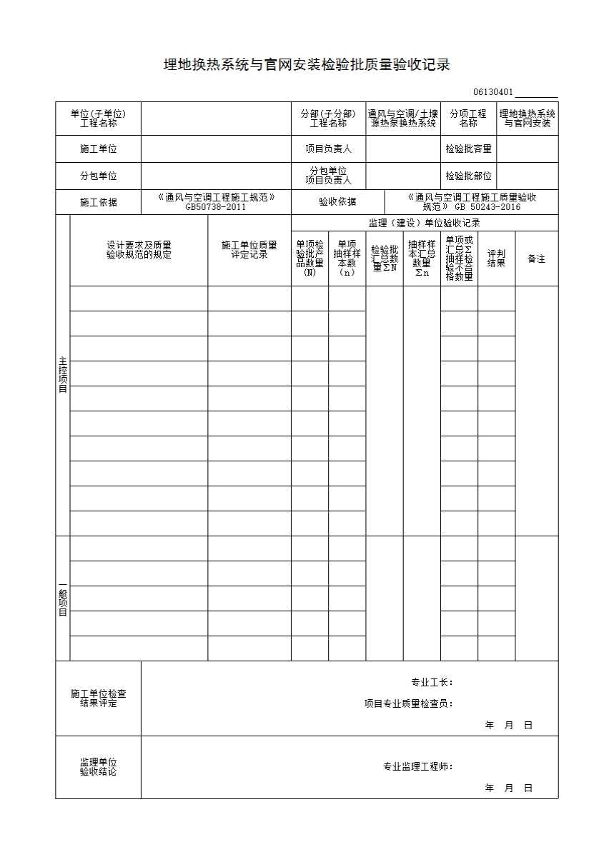 表格名称:06130401_埋地换热系统与管网安装检验批质量验收记录