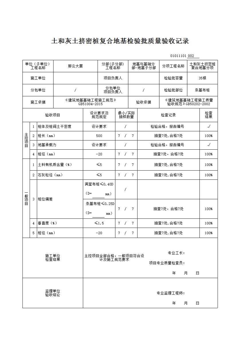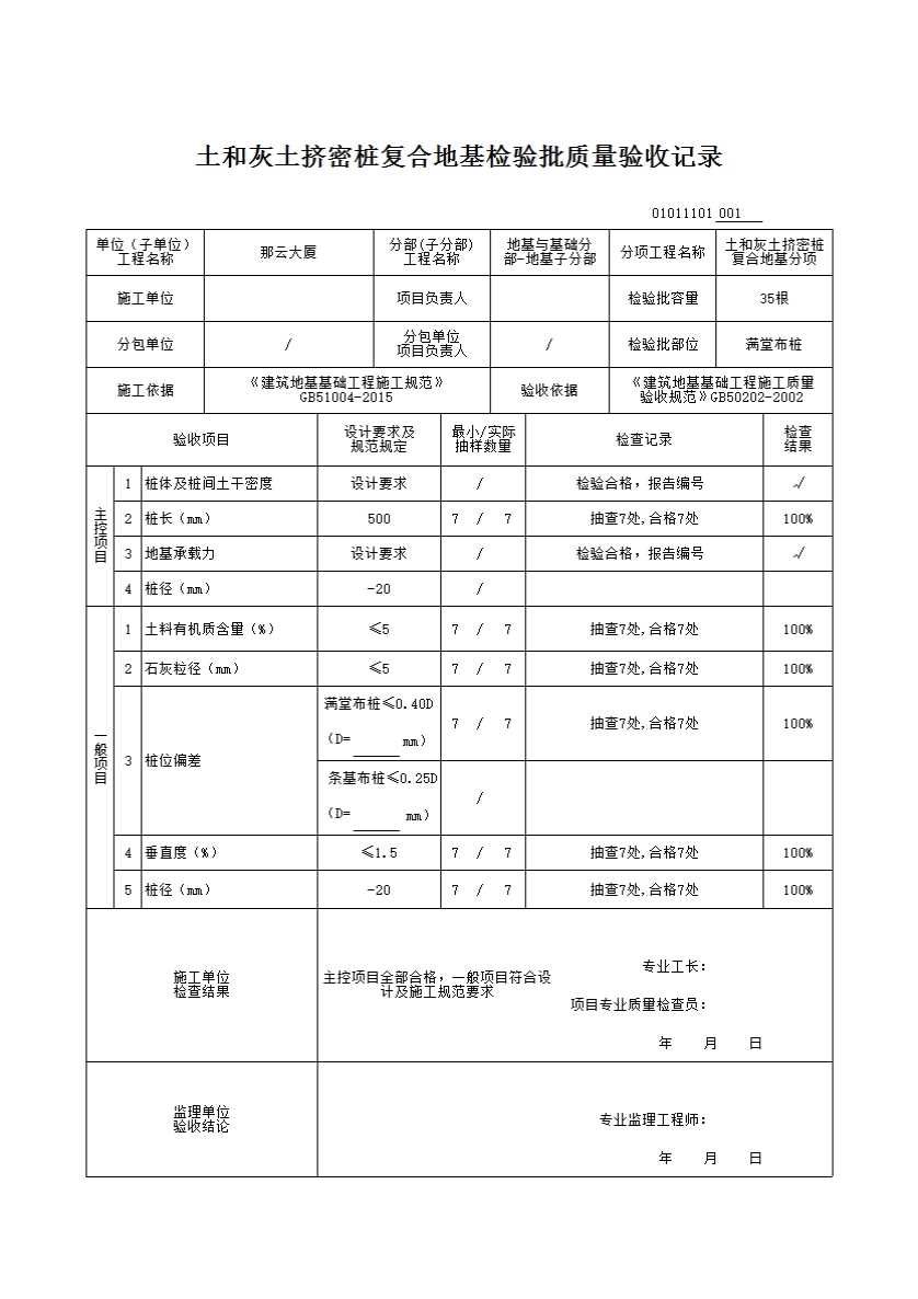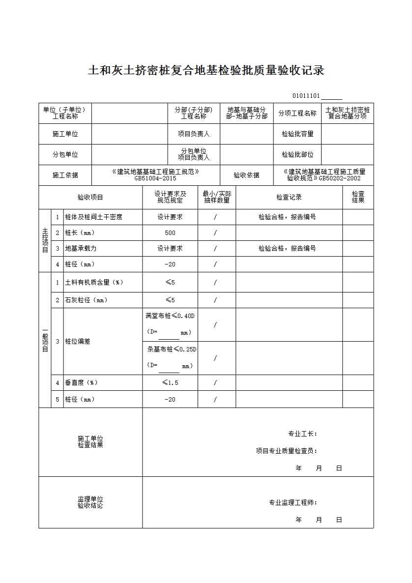 01011101_土和灰土挤密桩复合地基检验批质量验收记录