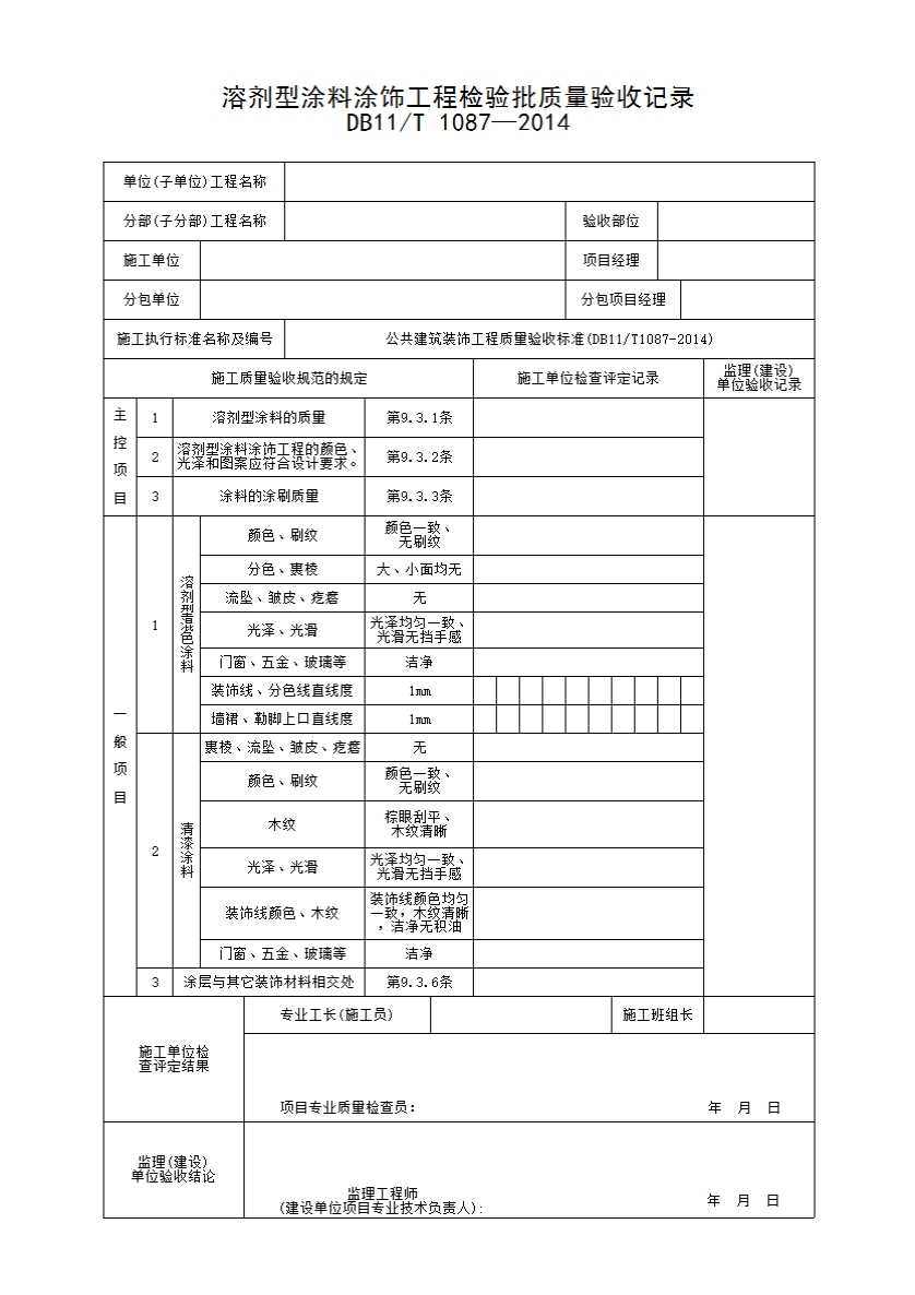 表格名称:溶剂型涂料涂饰工程检验批质量验收记录