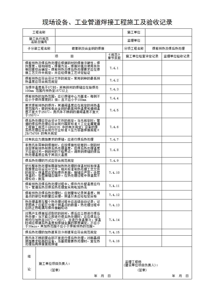表格名称:碳素钢及合金钢的焊接 (焊前预热及焊后热处理)