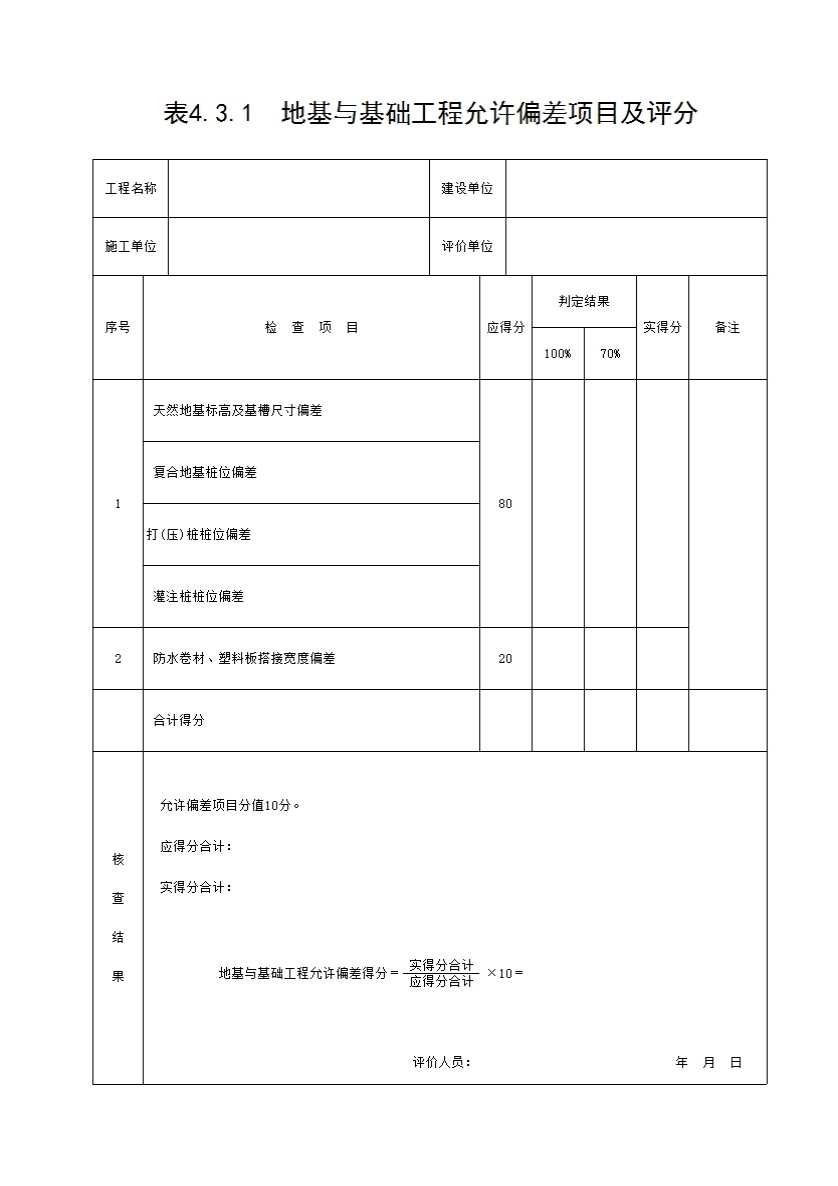 表格名称:表4.3.1 地基与基础工程允许偏差项目及评分