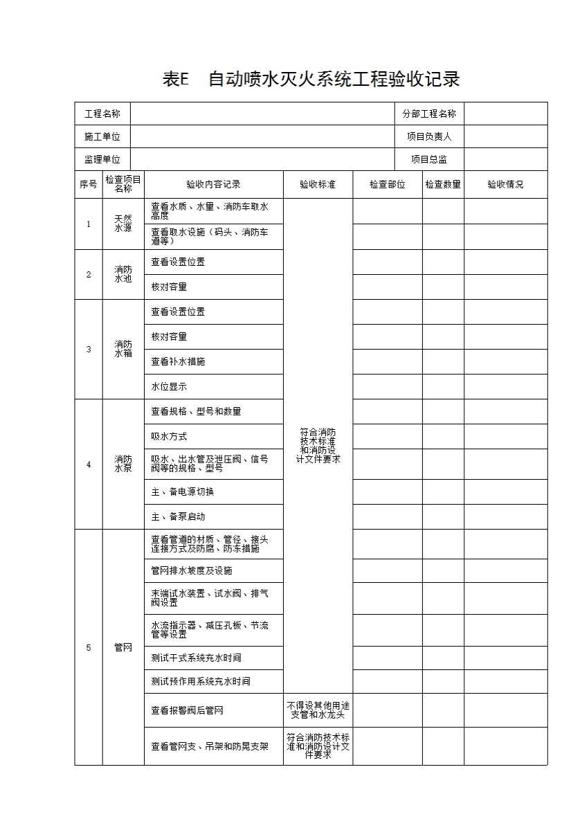 表格名称:表E 自动喷水灭火系统工程验收记录