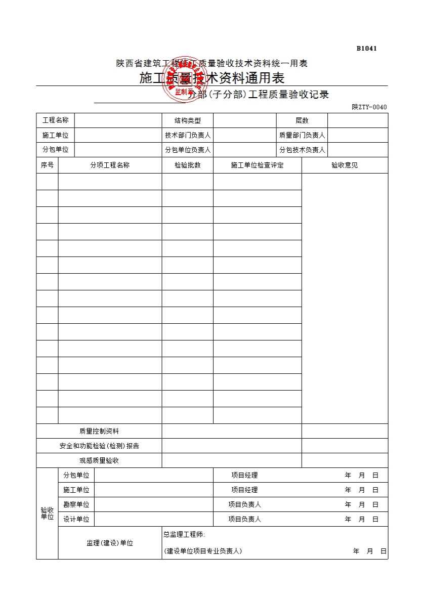 分项工程检验批质量验收记录表