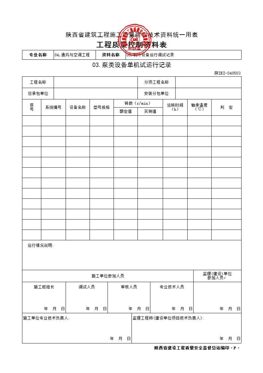 陕ZKZ-040503 泵类设备单机试运行记录C4015