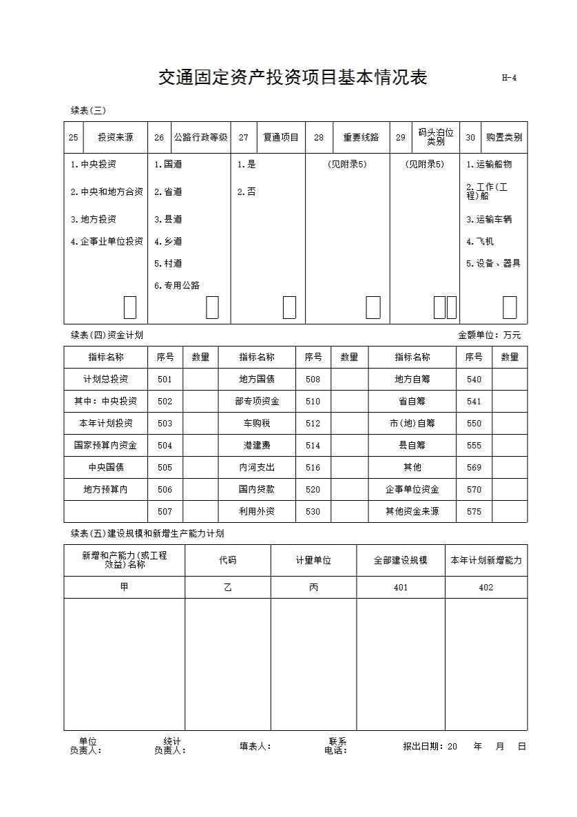 表格名称:H-4 交通固定资产投资项目基本情况表