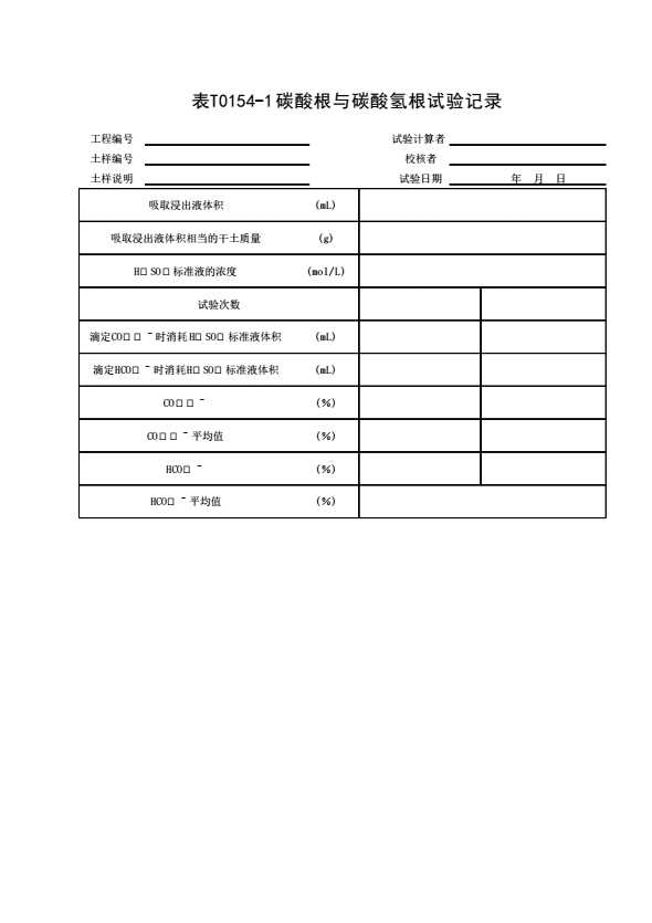 表T0154-1 碳酸根与碳酸氢根试验记录