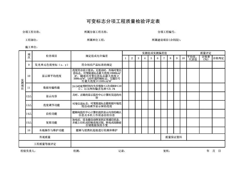 表格名称:表9.9.2 可变标志分项工程质量检验评定表