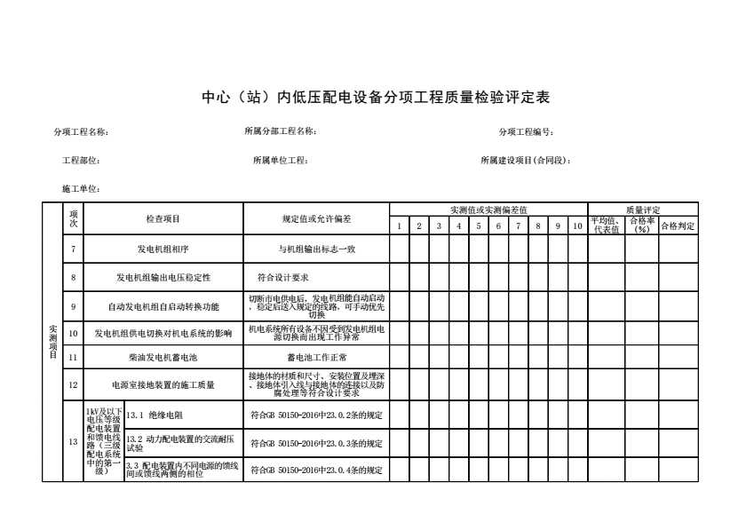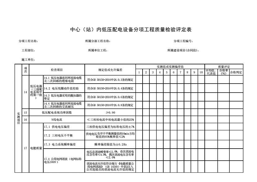 表9.20.2 中心(站)内低压配电设备分项工程质量检验评定表