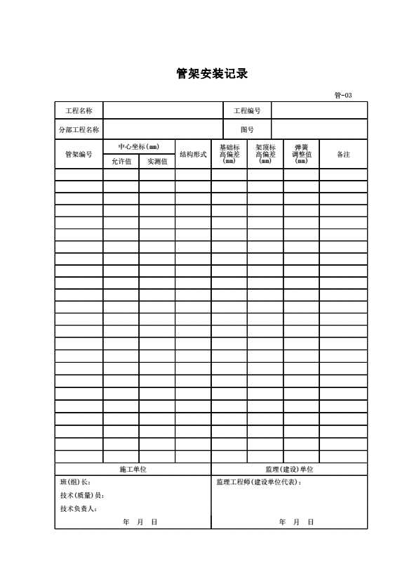 表格名称:管-03 管架安装记录