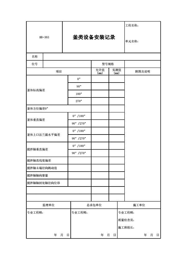 表格名称:HB-303 釜类设备安装记录