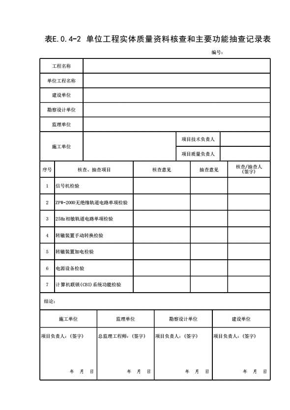 表格名称:1【计算机联锁(CBI)系统】单位工程实体质量资料核查和主要功能抽查记录表