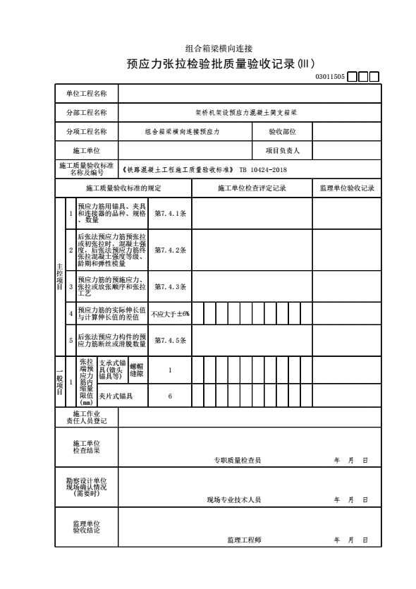 表格名称:03011505 预应力张拉检验批质量验收记录(Ⅲ)