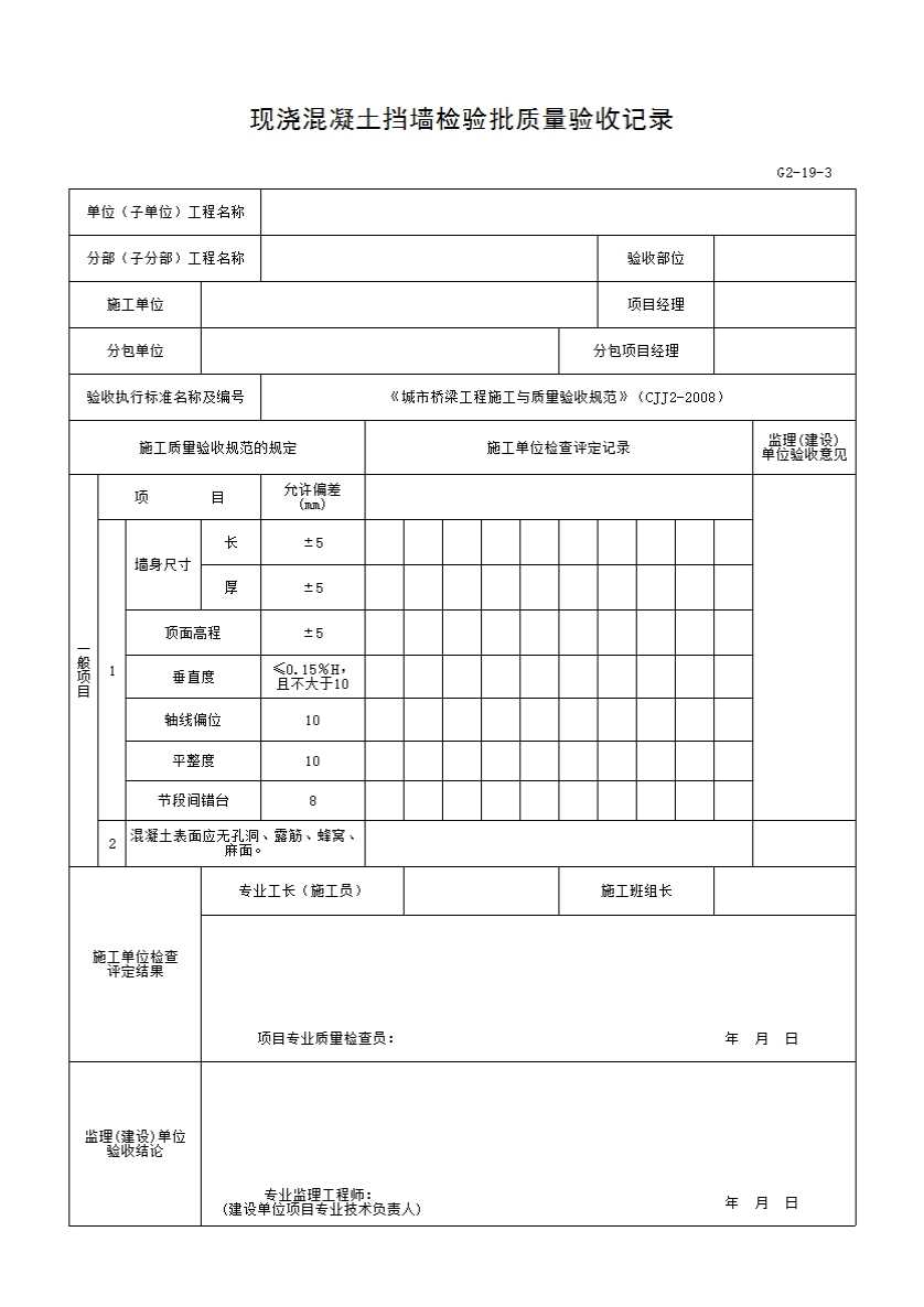 表格名称:现浇混凝土挡墙检验批质量验收记录
