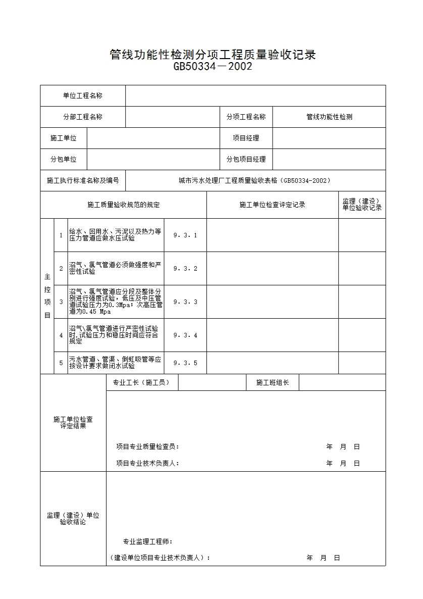 城市污水处理厂工程质量验收表格(GB 50334-2002