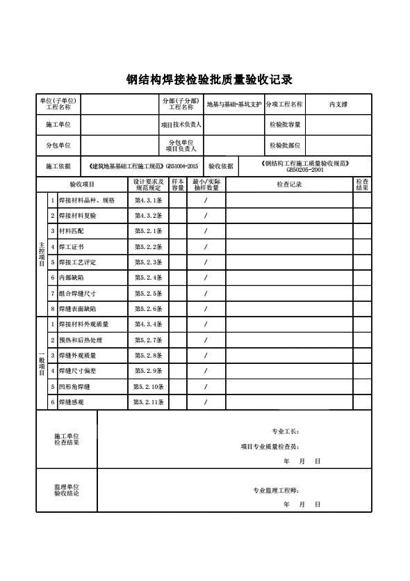 钢结构焊接检验批质量验收记录