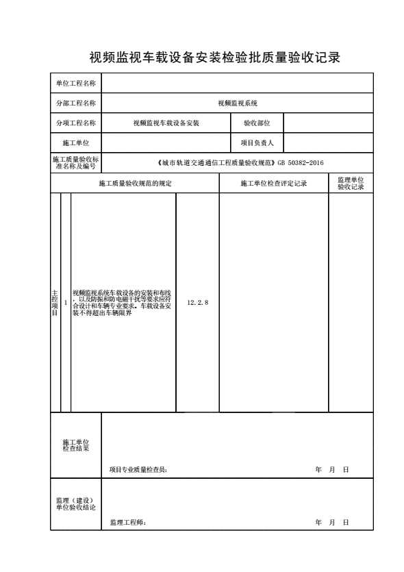 表格名称:视频监视车载设备安装检验批质量验收记录